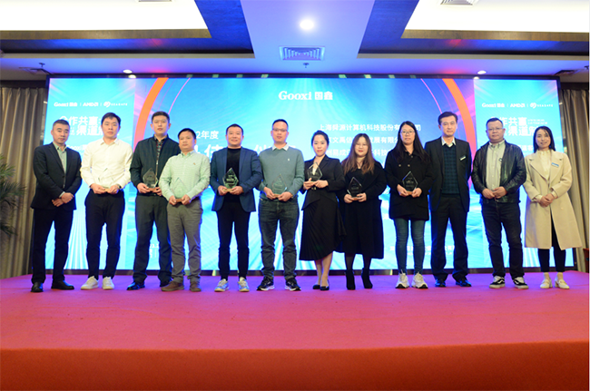 星光闪耀,评选并现场颁发了年度最佳伙伴奖、开拓突破奖、新锐销售奖等多个重磅奖项,对一年来的优秀渠道伙伴予以表彰,展现出Gooxi将继续发力渠道业务,持续释放渠道价值,携手合作伙伴共创未来的决心。